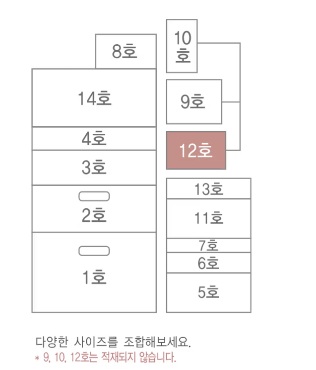 | 기타 | - | 11호 : 15 × 11 × 8.8 cm | 무인양품 동일 사이즈 없음 (별도 활용 가능) |